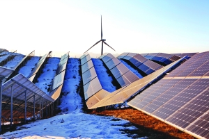 据国家能源局消息,为进一步优化能源结构,我国将加快发展风电和光伏发电,推动第一批100万千瓦左右规模的光热发电示范项目建设,今年力争风电新增装机2000万千瓦以上,光伏发电新增装机1500万千瓦以上。同时,积极发展水电,安全高效发展核电,积极推动地热能、生物质能发展。图为位于河北省宣化县深井镇鱼跃沟村东荒山上的“风光”互补发电基地。 新华社/图文